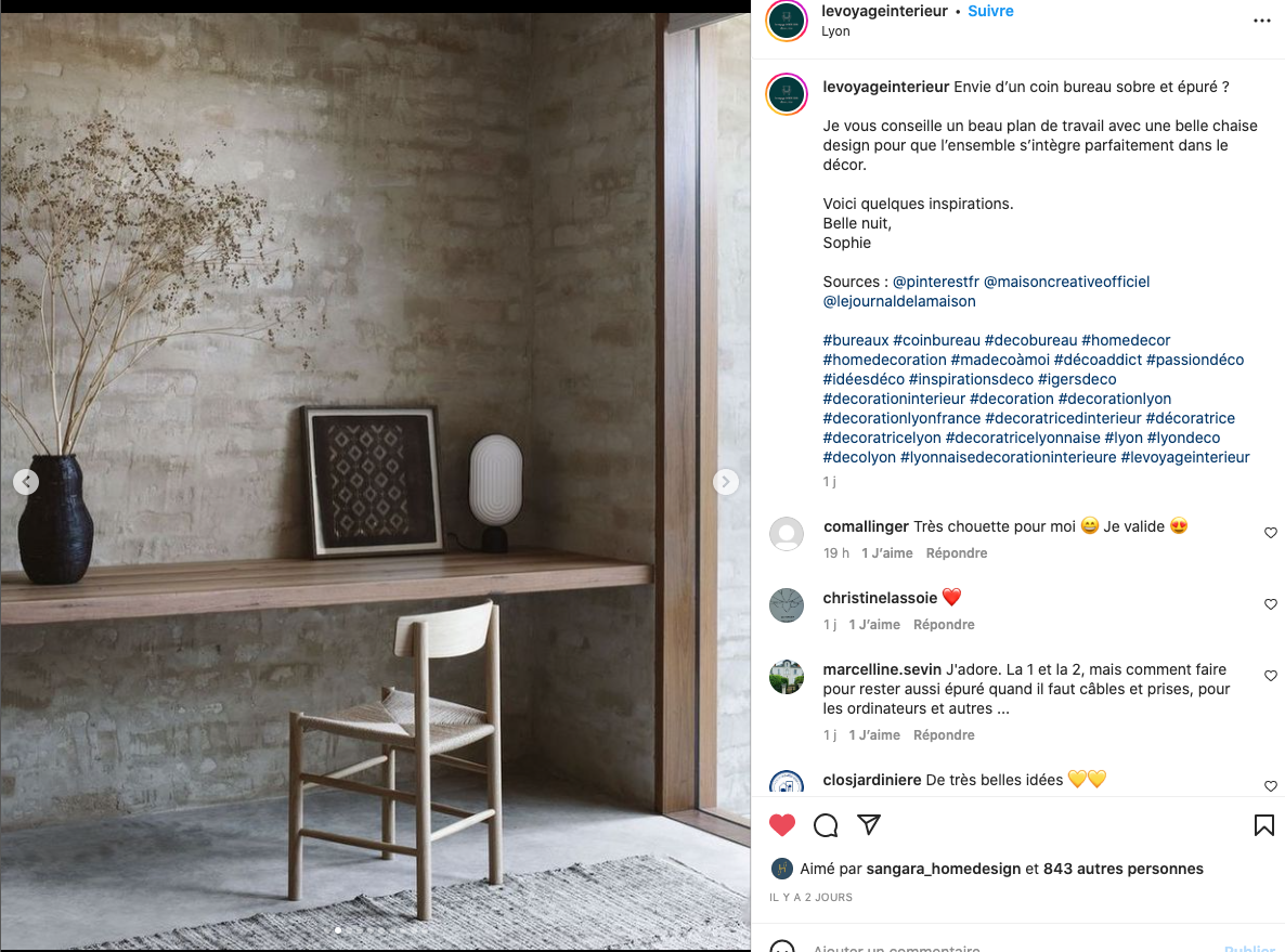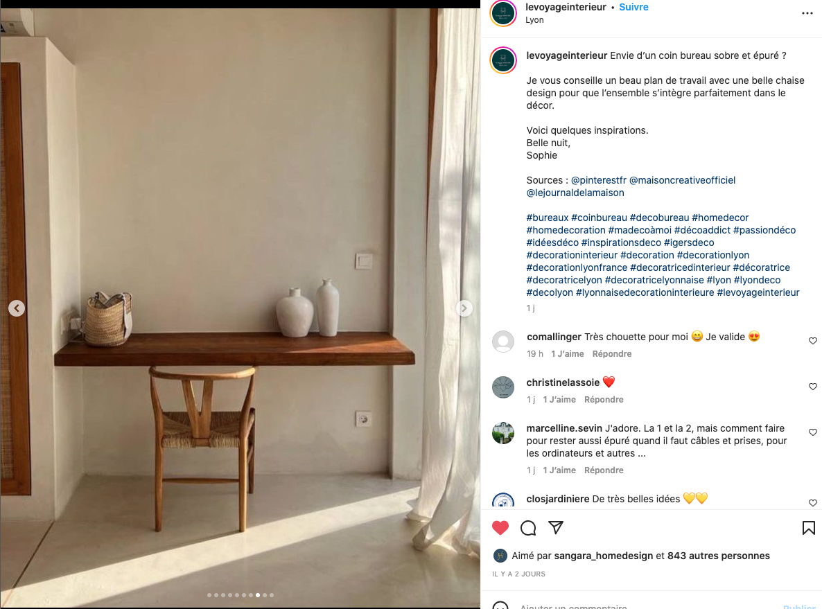Sophie Igras a rassemblé sur son compte Instagram des idées merveilleusement simples pour créer un espace de travail sans bureau : https://www.instagram.com/p/Cn-UcWks1Kk/?next=%2F