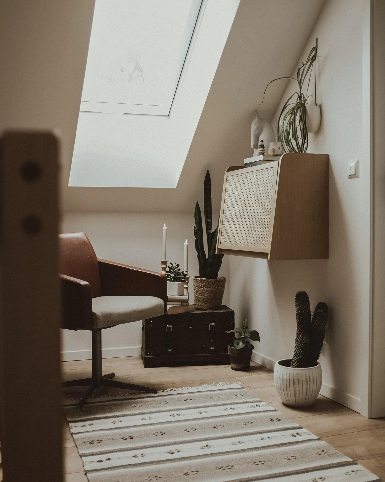 Une fois que vous avez peint vos murs, misez sur un maximum de lumière. De petits miroirs décoratifs accrochés au mur reflètent la lumière et agrandissent l'espace. Si la pièce le permet, apportez autant de nature que possible : les plantes succulentes nécessitent peu de lumière et apportent une touche de verdure à votre bureau.
