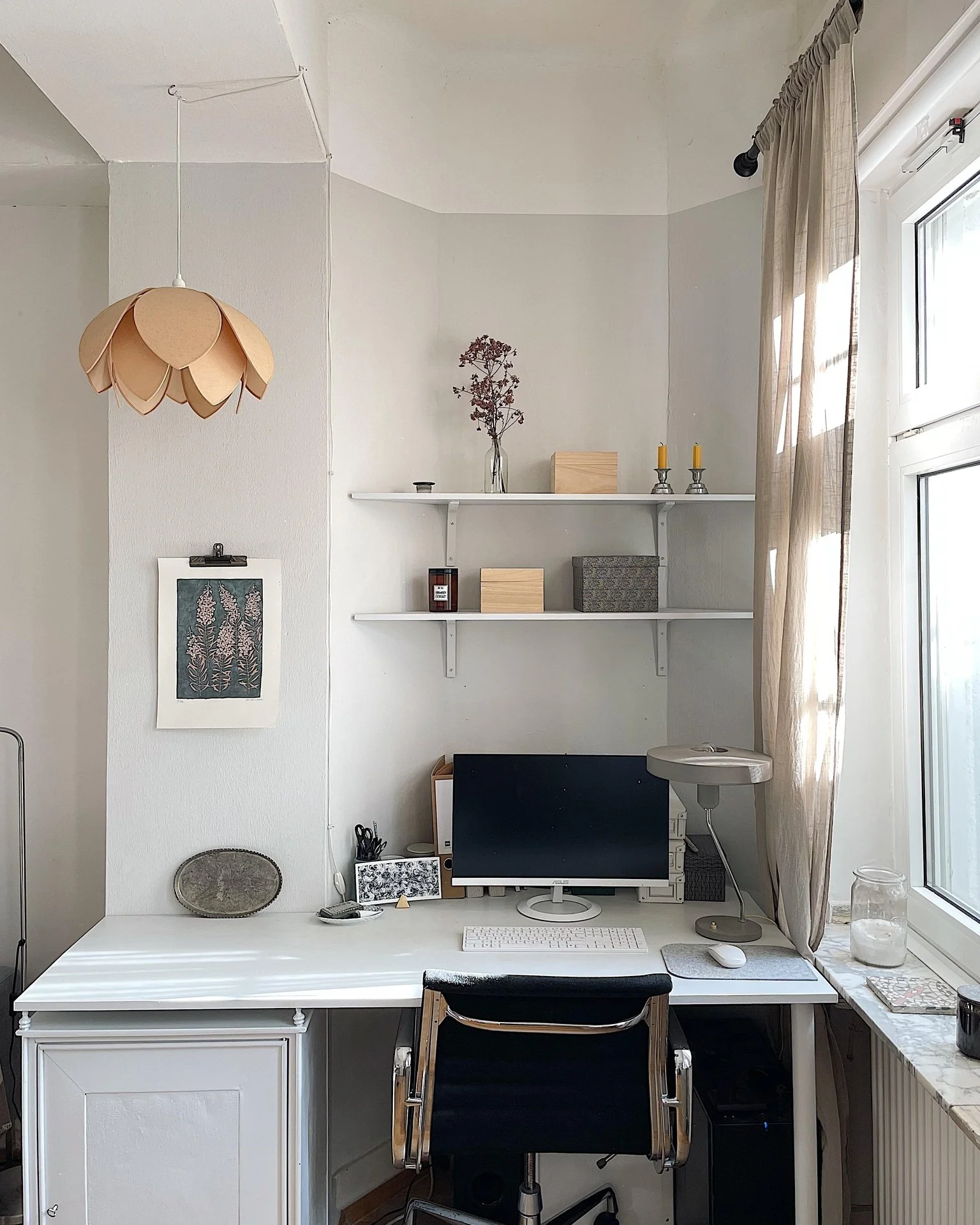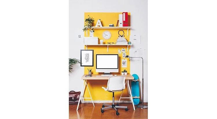 Si vous ne souhaitez pas nécessairement délimiter votre espace de travail, mais plutôt l'intégrer harmonieusement dans le style de votre décoration, veillez à ce que tout soit en harmonie, tant au niveau des couleurs que du style.